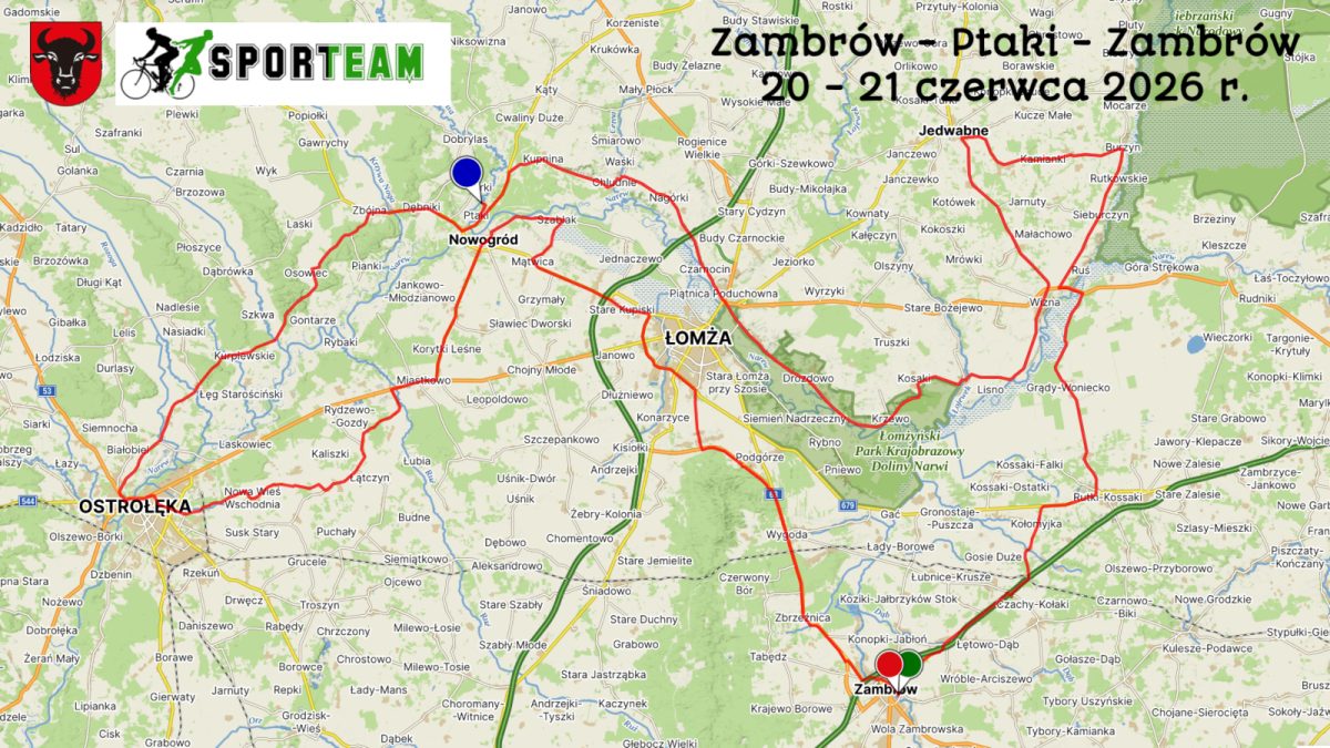 Zapraszamy wszystkich chętnych na dwudniowy rajd rowerowy organizowany we współpracy z Miastem Zambrów w ramach akcji „Zambrów na rowery” w dniach 20 – 21 czerwca 2026 roku na trasie Zambrów – Jedwabne – Wizna – Piątnica – Ptaki – Ostrołęka – Nowogród – Łomża – Zambrów